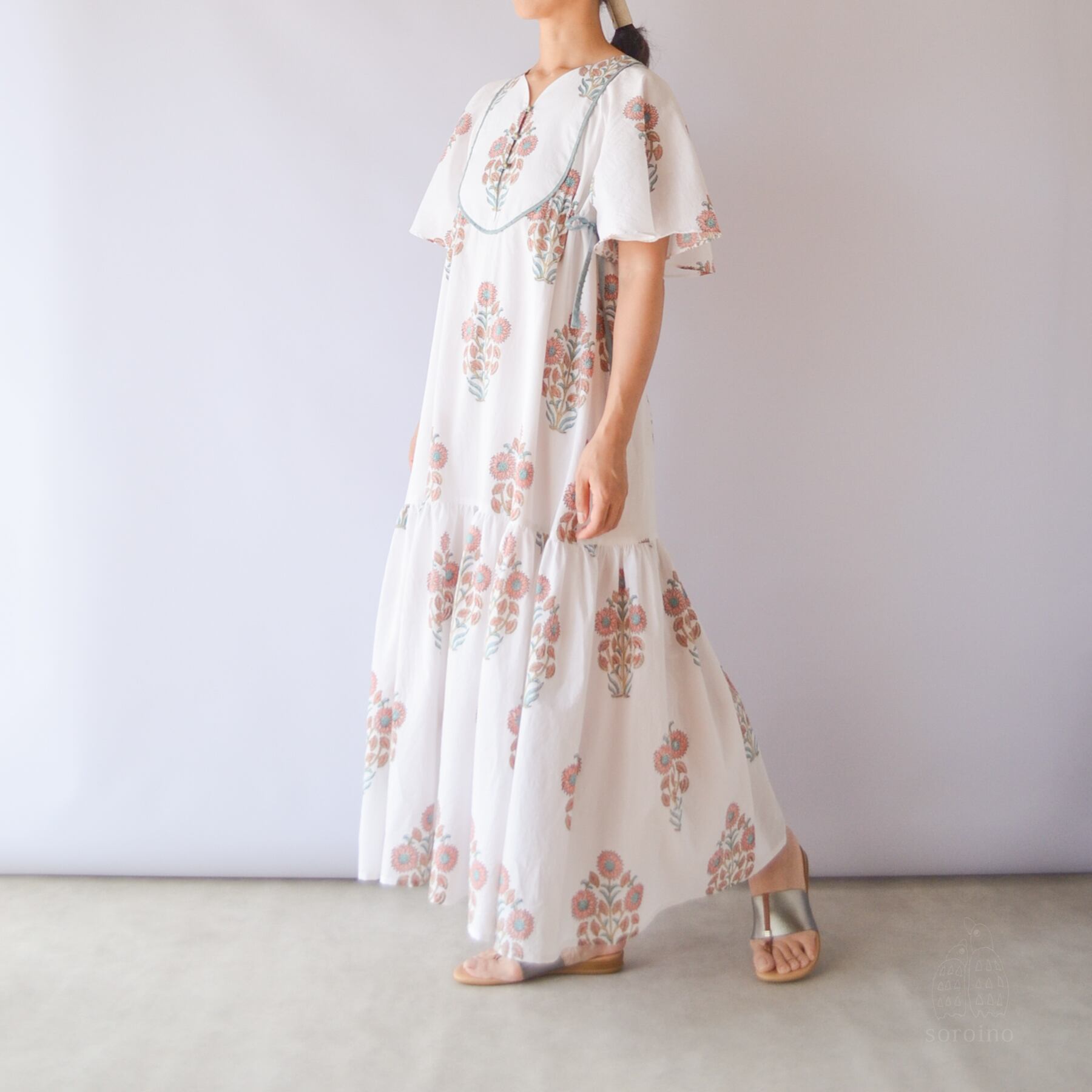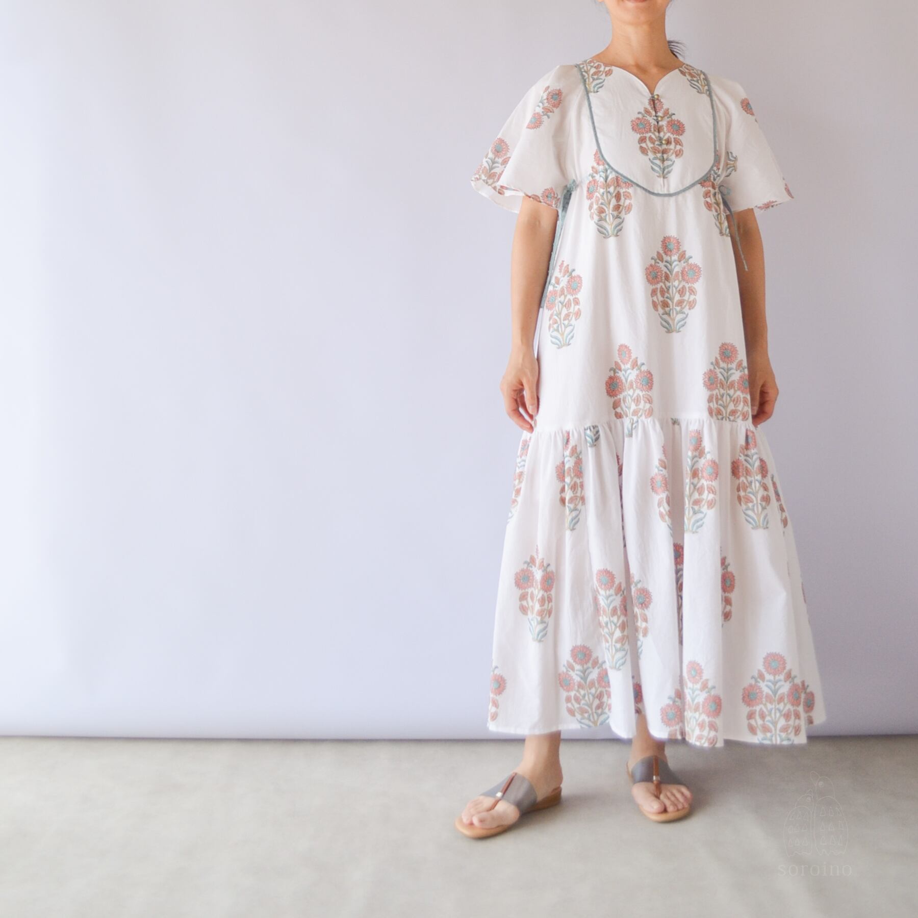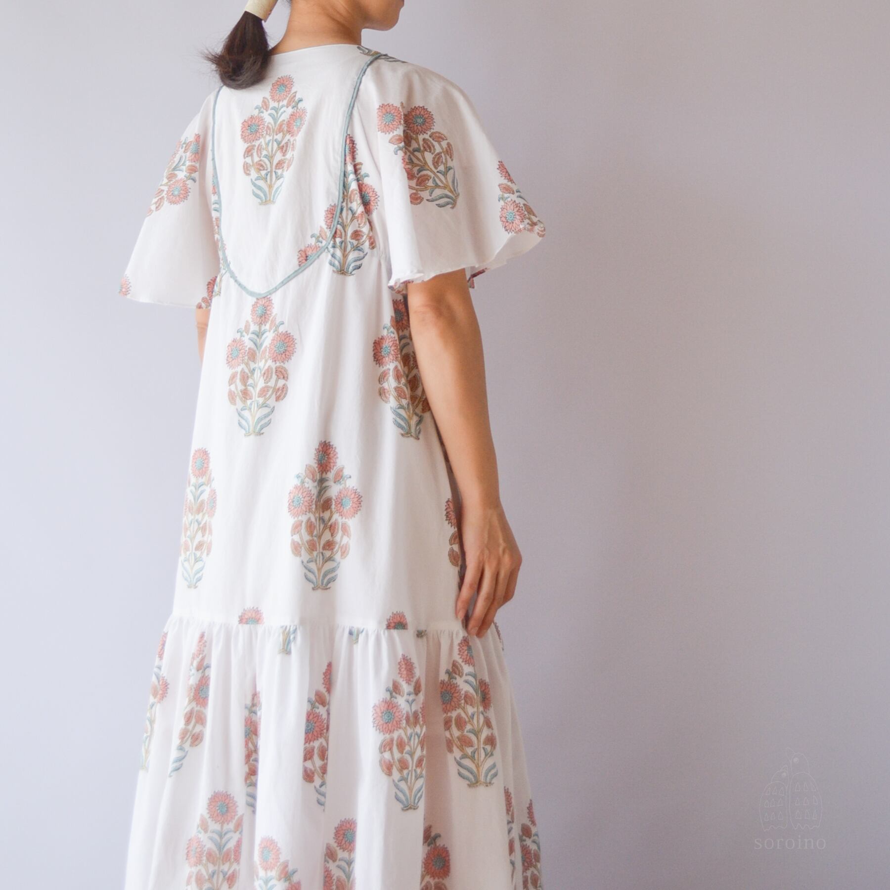 質の良い綿織物として 昔から愛されるインド綿に、職人さんが木版で 一色一色プリントを施した“ブロックプリント”と呼ばれる生地を使用。