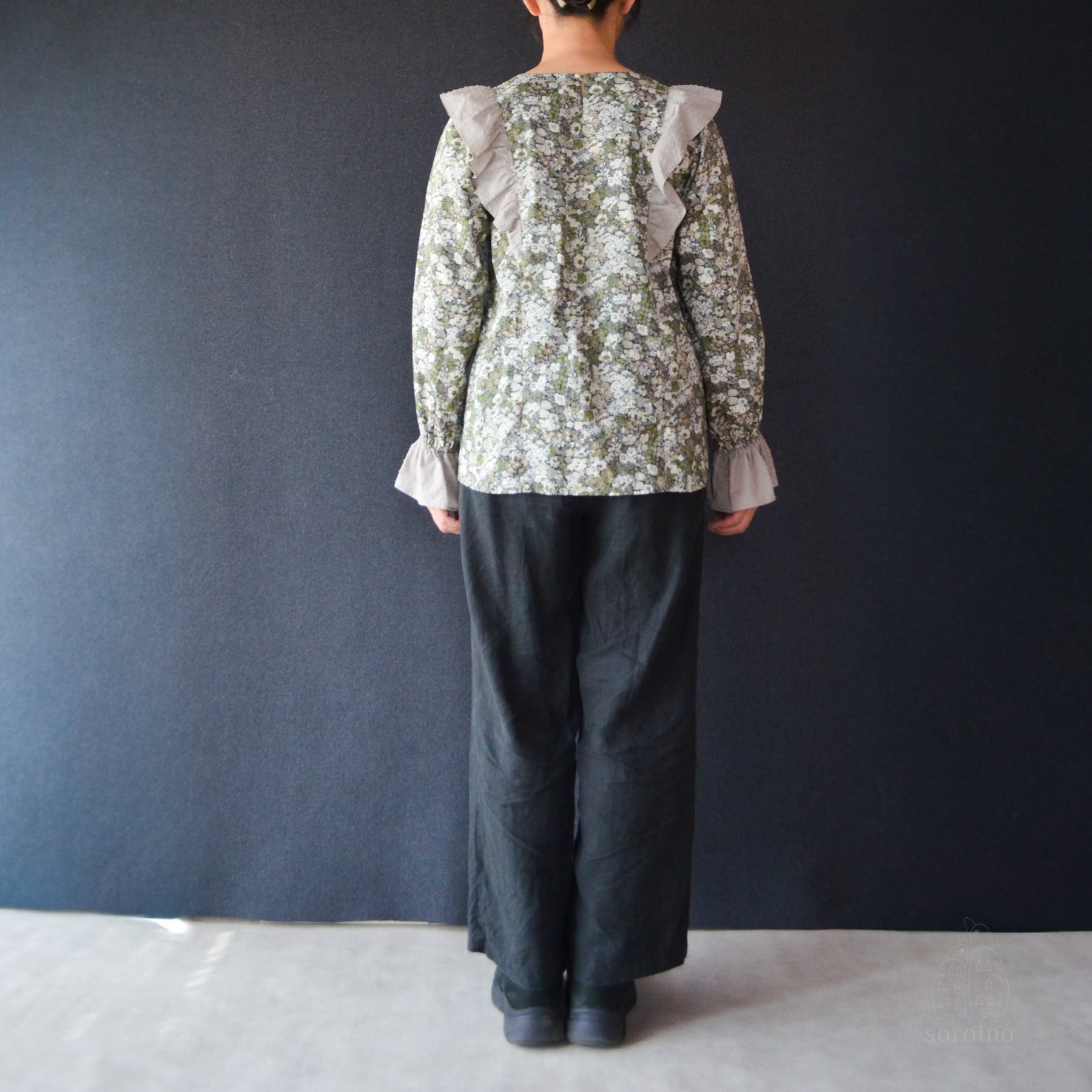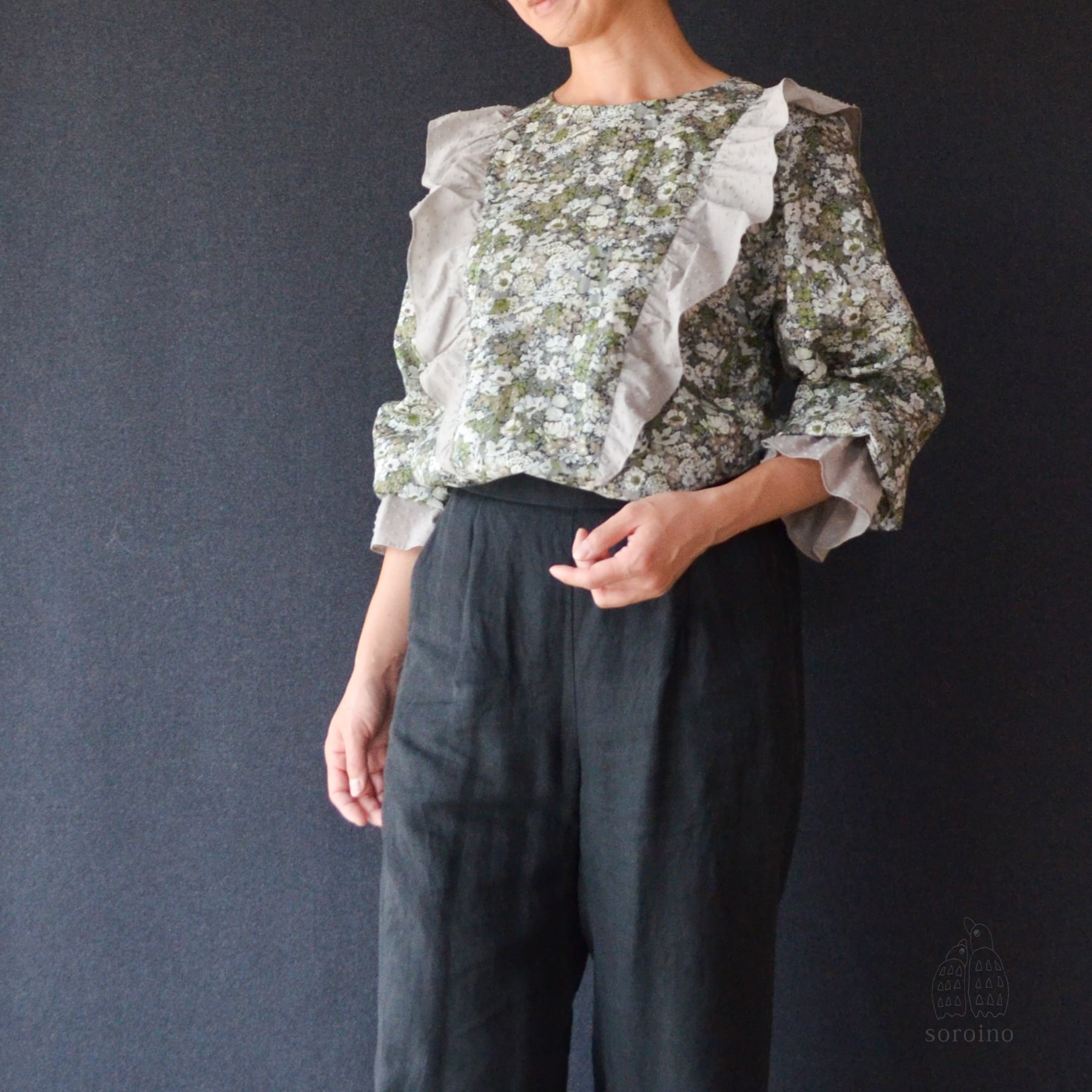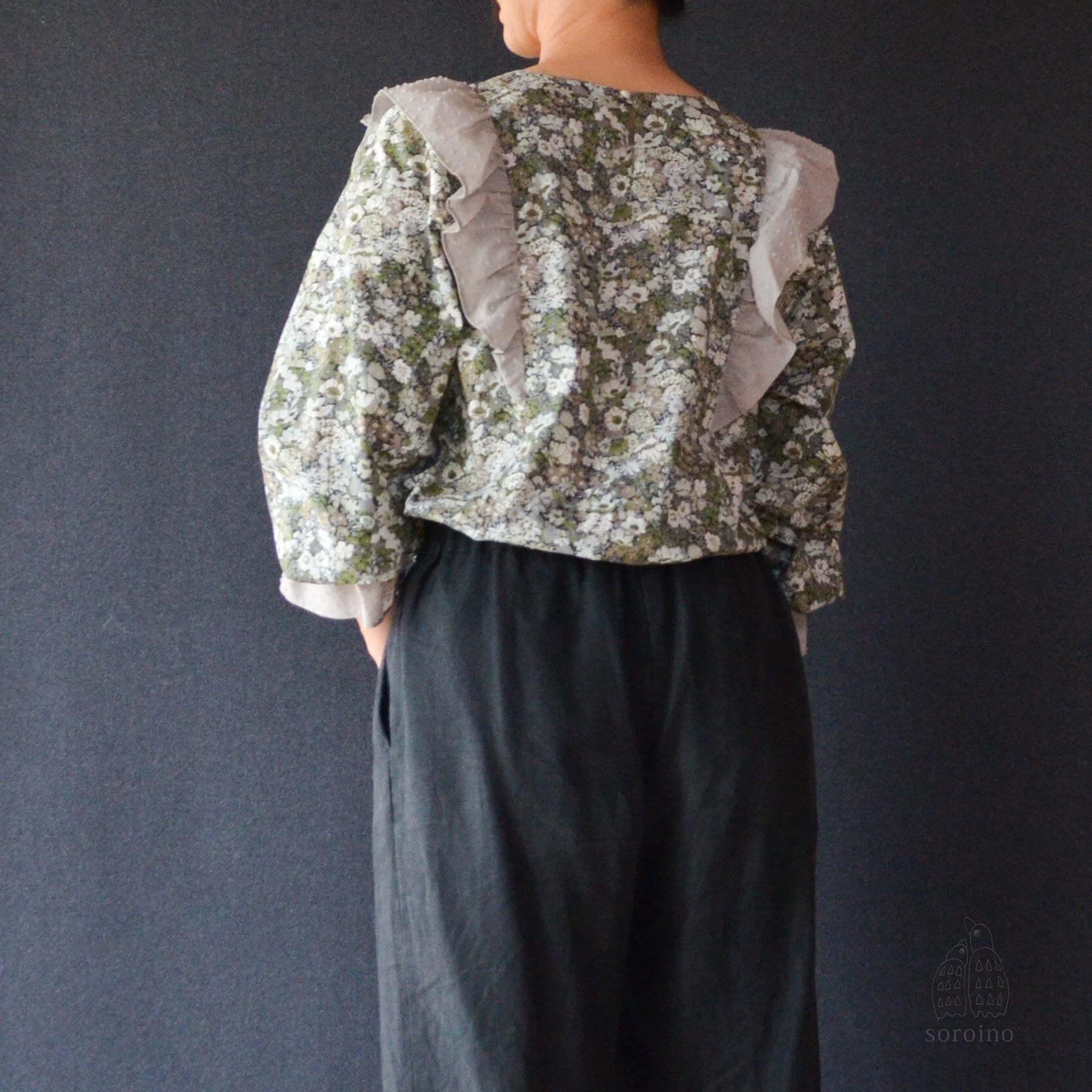 【限定1点】フリルブラウス|リバティプリント=ソープ(check & stripe 限定カラー)