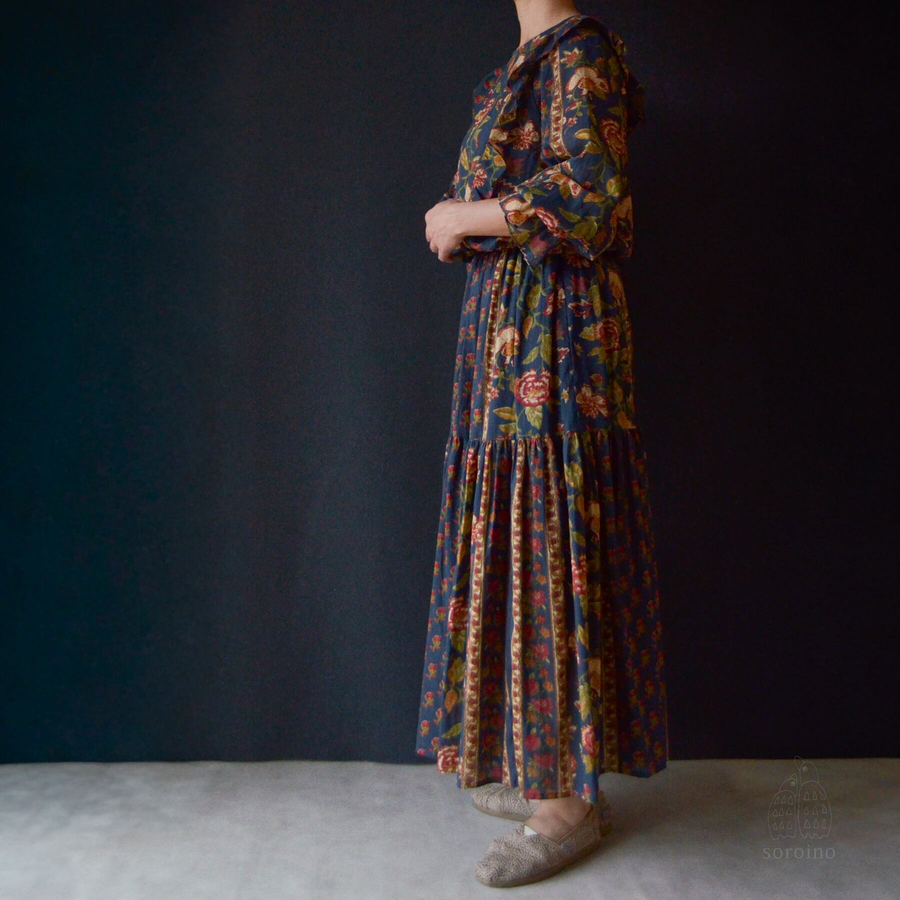 ☑︎ ブロックプリント生地はインドの職人さんの木版による手仕事で、模様をひとつひとつスタンプのようにプリントしていきます。その特徴として、インクのカスレ、飛び、柄ズレ、染料の匂いなどがあります。手仕事の味として親しまれておりますが、気になる方は購入をお控えください。