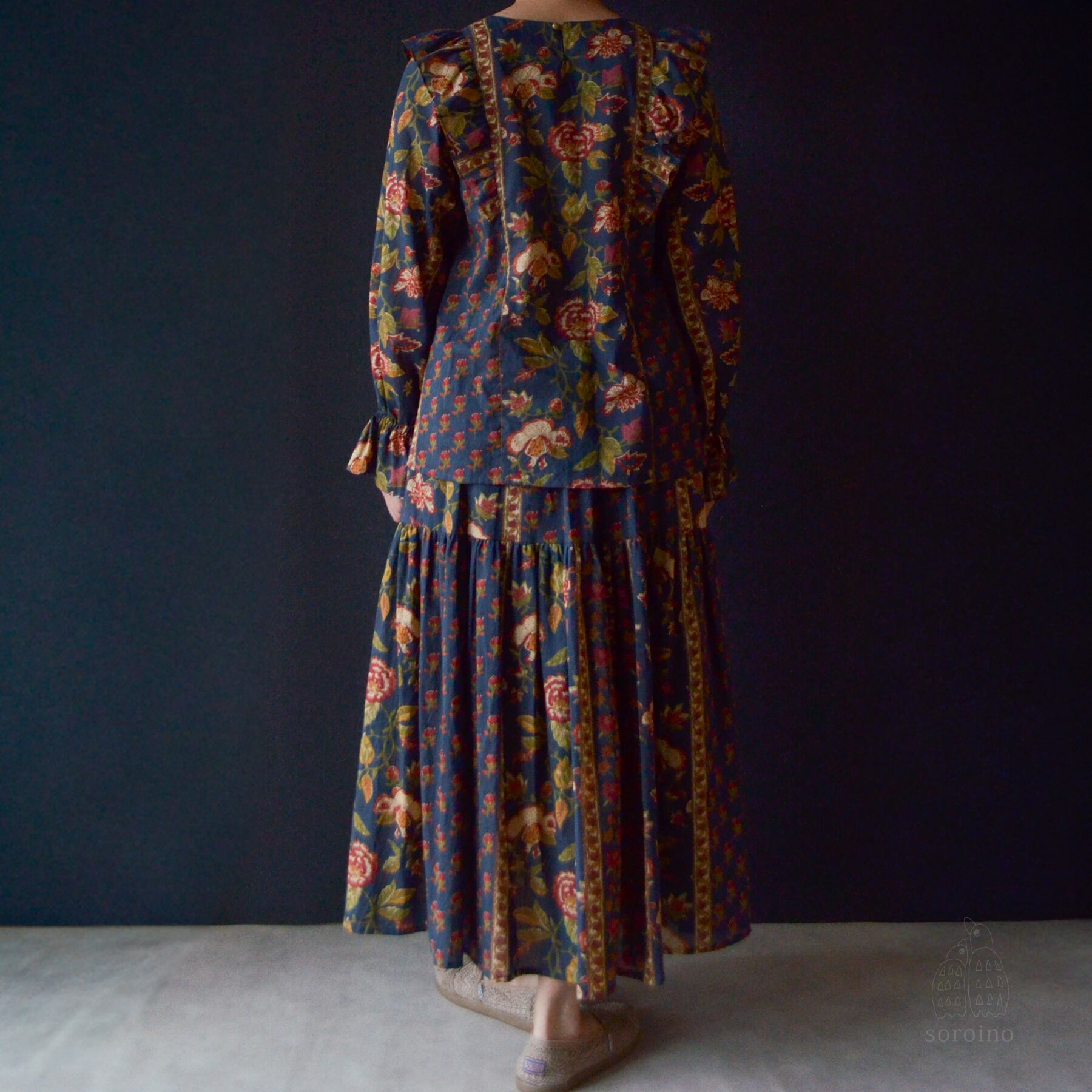 【限定1点】南仏の風まとう大人のティアードスカート|ブロックプリント セットアップも可